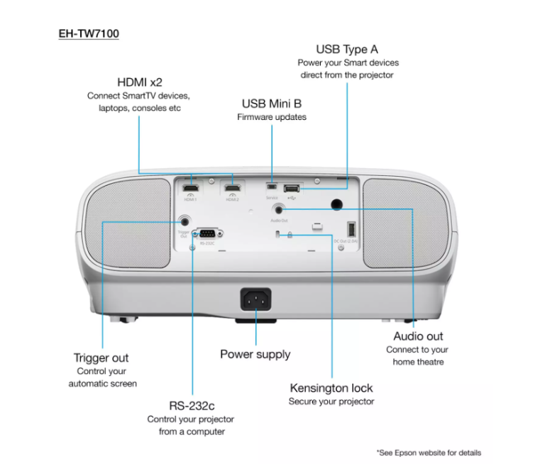 • Superior image quality: 3,000 lumens brightness and 100,000:1 contrast. 4K PRO-UHD* projector with HDR10 delivers lifelike content and clear shadow detail. Epson's 3LCD technology delivers up to three times more color brightness compared to 1-chip DLP projectors*